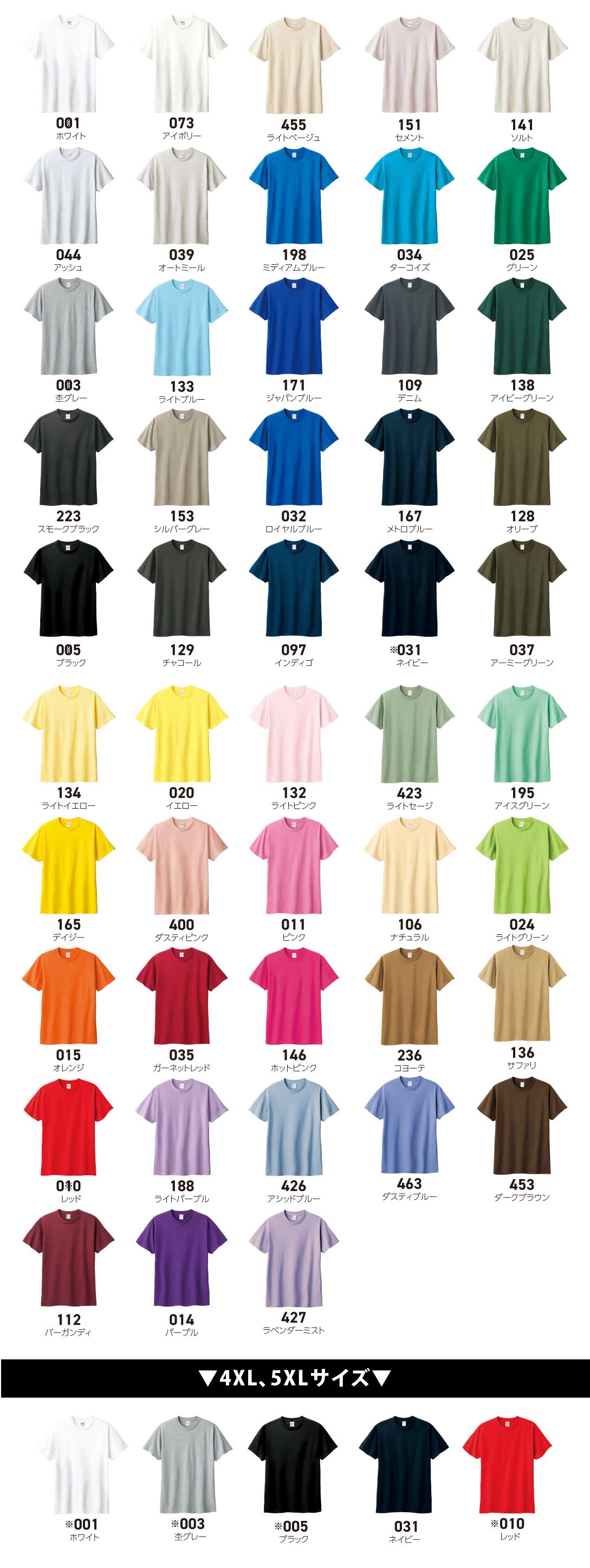| 5生地色 | | サイズ | サイズ | 枚数 | 枚数 |  | |