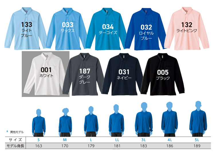 ◆ドライボタンダウン長袖ポロシャツ【ドライ料金】 4.4 oz