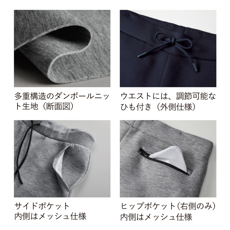 すっきりしたシルエットで動きやすい、軽量で皴にならない万能パンツ