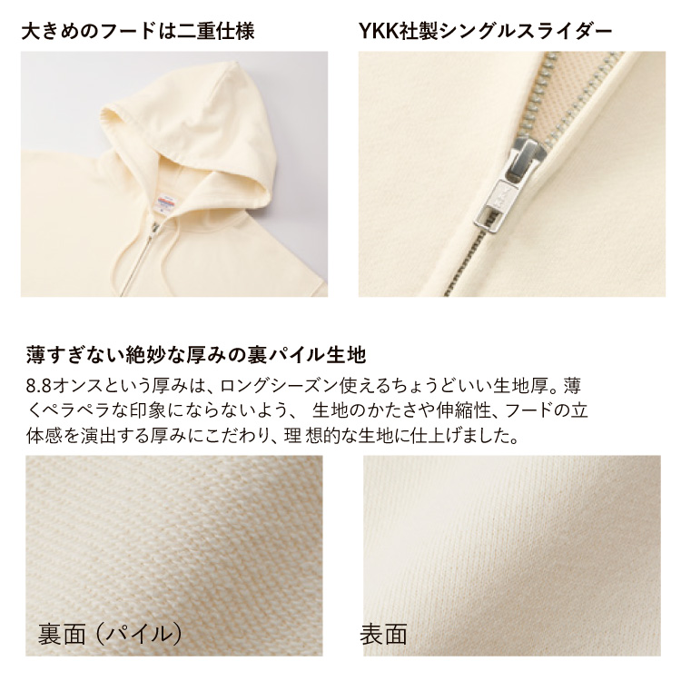 8.8オンス オーセンティック パイル スウェット 古ジップ パーカ(裏パイル) 8.8 oz