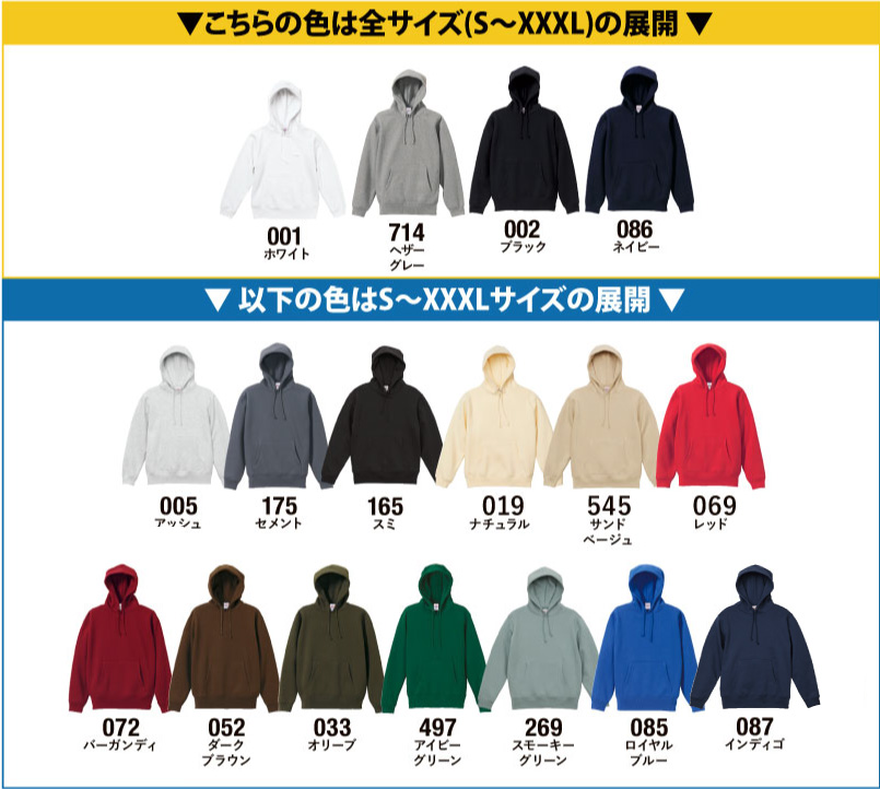 ※品番5624(スウェットパンツ)とセットアップ可能 ※5624品番と、セットアップを組むことは可能でございますが、上下にて商品の色味が合わない場合がございますので、予めご理解の上ご購入くださいますよう、お願い致します。 ※XXXLサイズは、001ホワイト 002ブラック・714ヘザーグレー・086ネイビーのみです。
