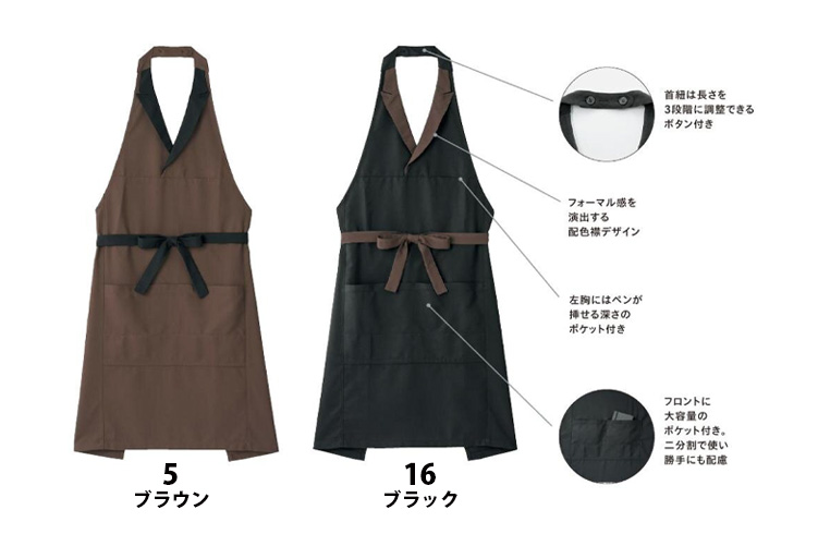 襟のデザインがフォーマル感を演出するデザインエプロン
