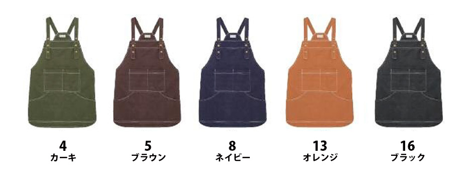 オーバーオール感覚のデニム調エプロン。ドットボタンでサイズ調整が可能。