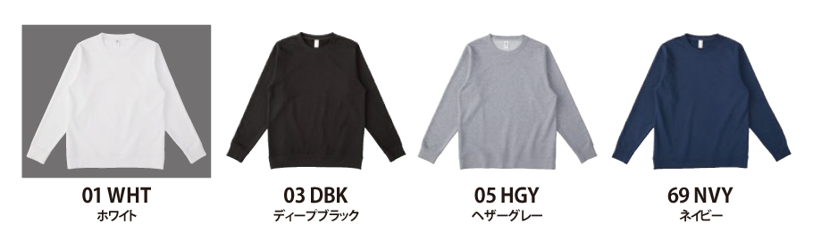 ライトな裏毛で幅広く使えるクルーネックスウェット。