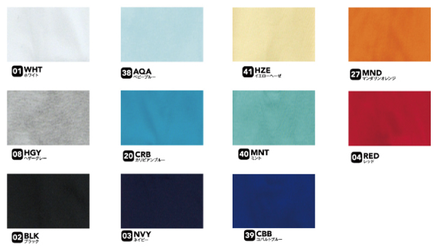 素材:ポリエステル35% 綿65%(HGYのみ:ポリエステル45% 綿55%)