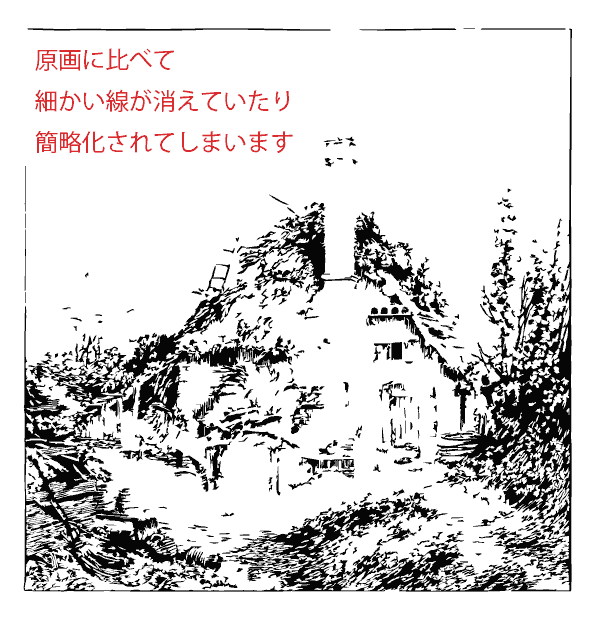 特に細い線で描かれた絵(エッチングなど)は細すぎて線が取れない場合があります。