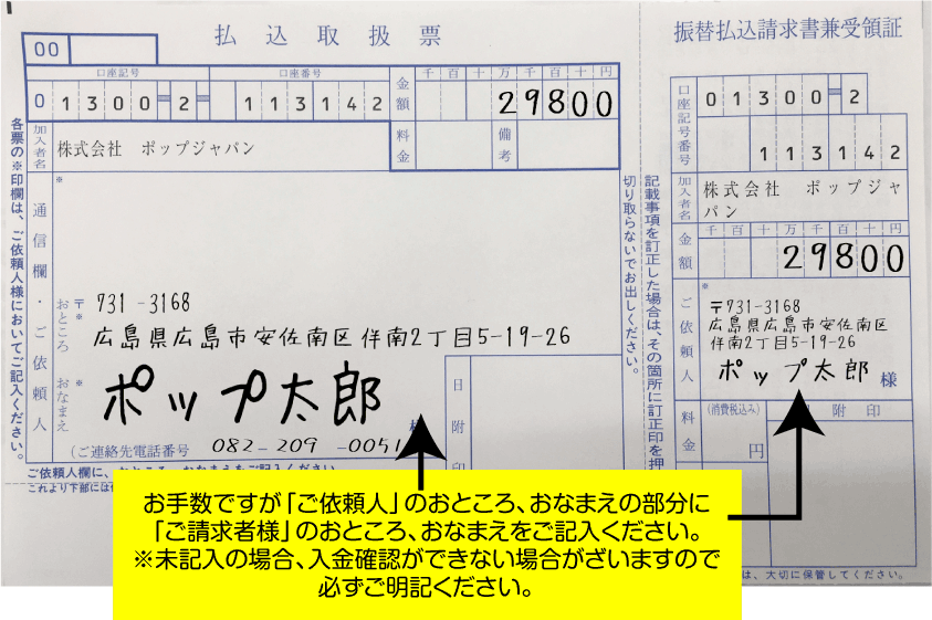 - ・振込用紙は商品と一緒にお送り致します。